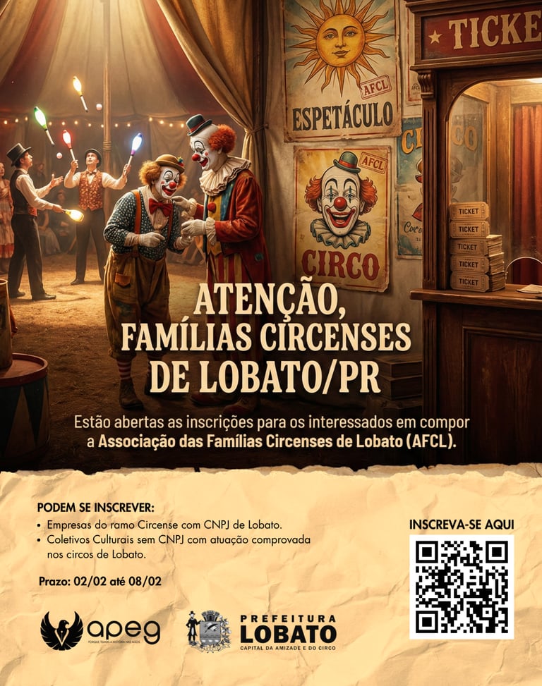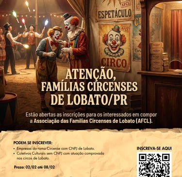 Inscrição para interessados em compor a Associação das Famílias Circenses de Lobato/PR.