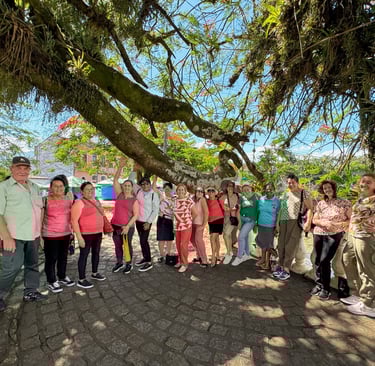 Após o almoço, os participantes exploraram pontos turísticos como a Ponte de Ferro, a Praça dos Imigrantes, o Rio Nhundiaquara e o centro histórico. Caminhar pelas ruas de Morretes foi como atravessar o tempo — cada esquina trazia uma nova fotografia, um novo sorriso, uma nova lembrança.